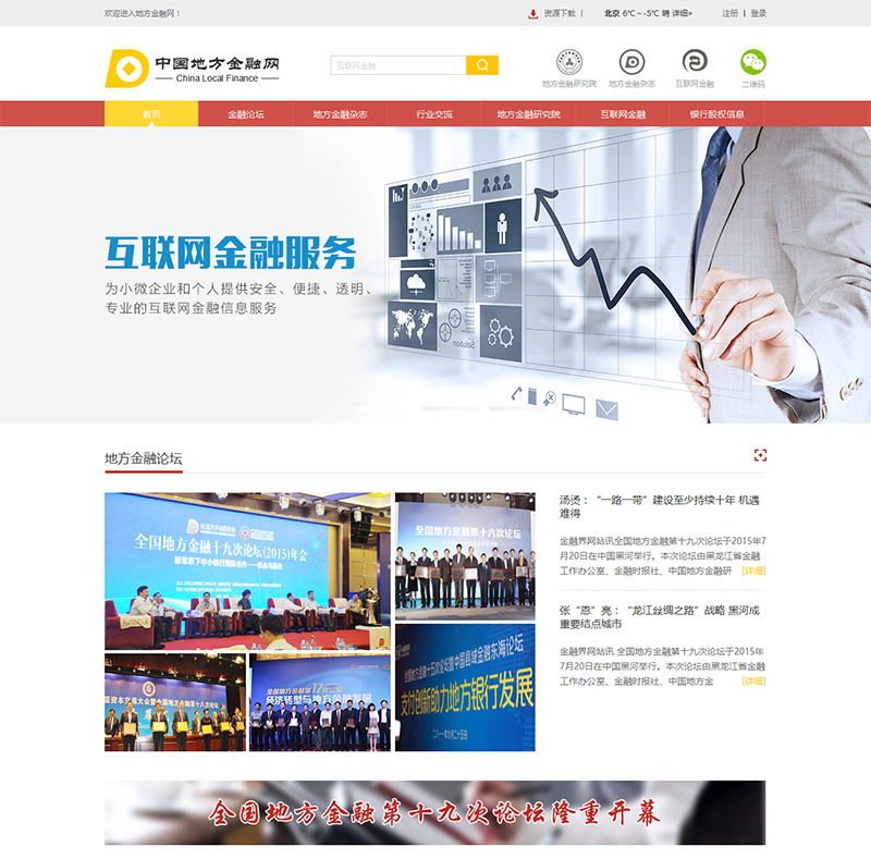 恭祝“中國地方金融網(wǎng)”正式上線,全國地方金融論壇于1996年由湖南財(cái)經(jīng)學(xué)院地方金融研究所、《地方金融》雜志、全國城市信用社通匯聯(lián)絡(luò)網(wǎng)發(fā)起籌建,1997年10月由 全國城市信用社通匯聯(lián)絡(luò)網(wǎng)、張家界市人民政府、湖南財(cái)經(jīng)學(xué)院、中國人民銀行金融研究所在張家界市舉辦全國地方金融第一次論壇,以后每年一屆。