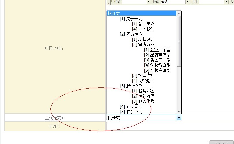 5、上級(jí)分類(重點(diǎn)):如下圖,選擇此欄目的父級(jí)欄目。默認(rèn)是跟分類。