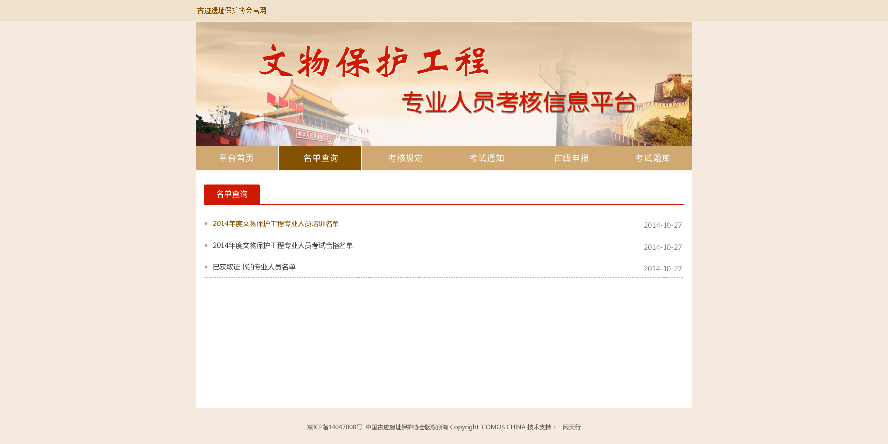文物保護(hù)工程專業(yè)人員-考核證書信息平臺
