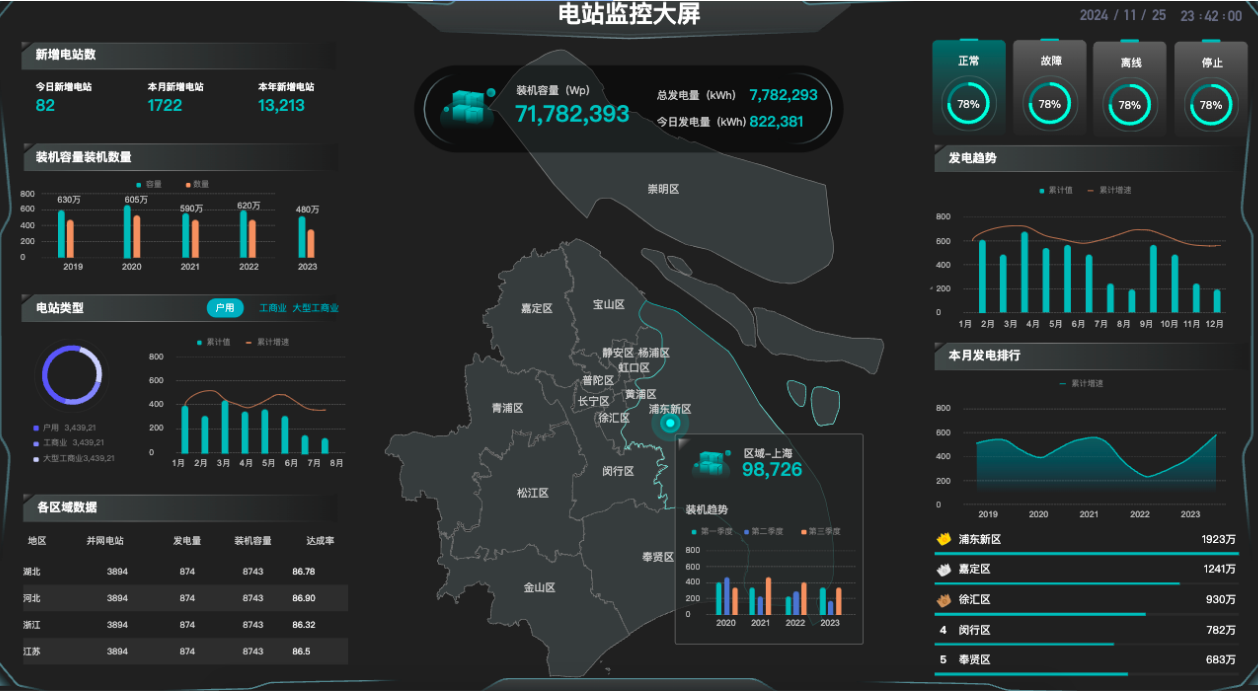 2、數(shù)據(jù)分析:對(duì)歷史數(shù)據(jù)進(jìn)行統(tǒng)計(jì)分析,為電站優(yōu)化運(yùn)行提供依據(jù)。通過(guò)對(duì)比不同時(shí)段、不同組件的發(fā)電量,找出電站運(yùn)行中的潛力點(diǎn),提高發(fā)電效率。